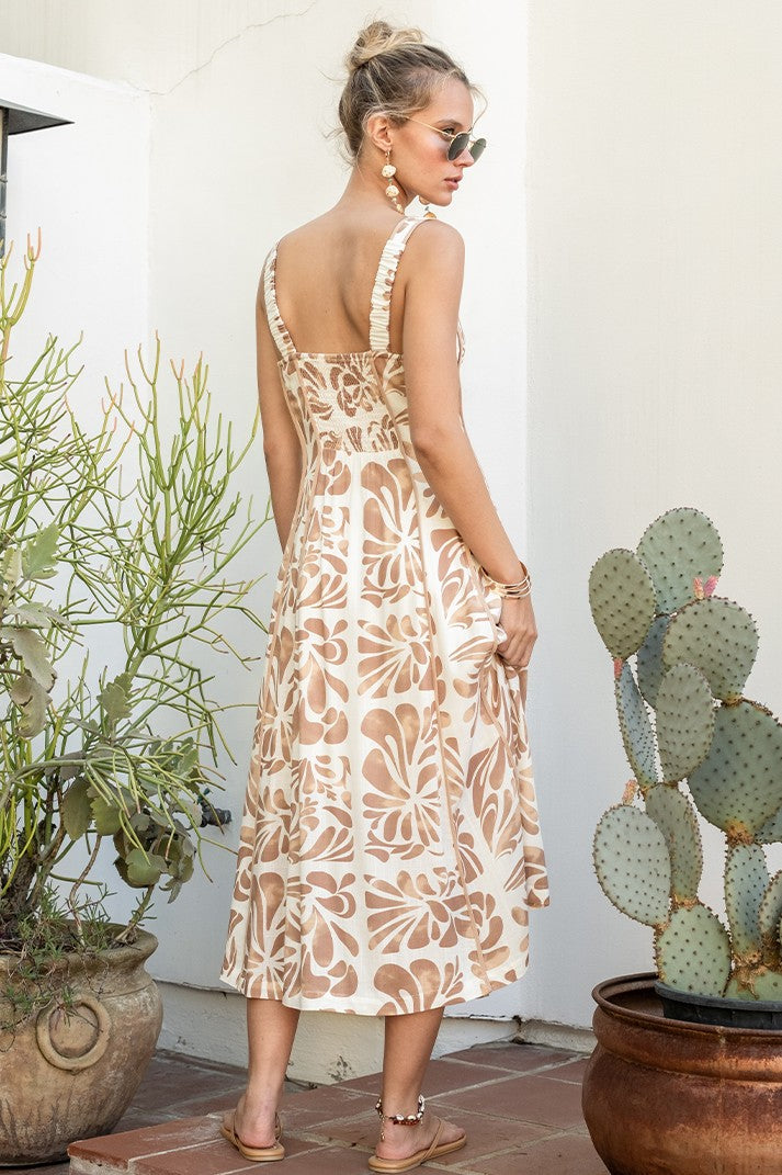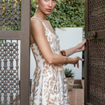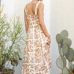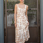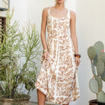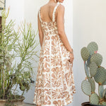• Custom botanical block print in ivory and taupe tones—earthy, elegant, and unique