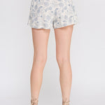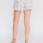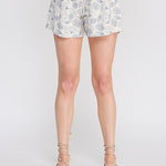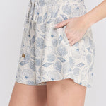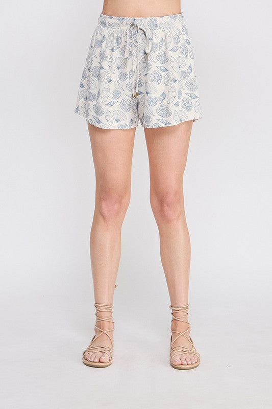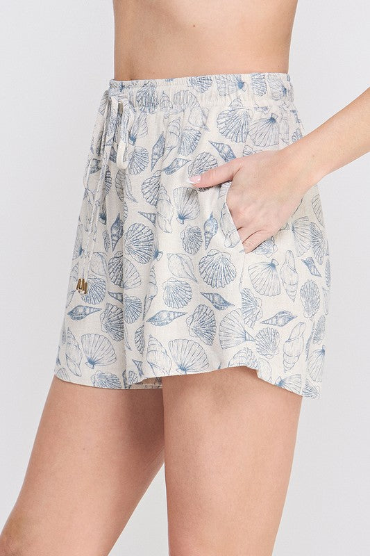 • Seashell print linen shorts in soft Blue Siren tone