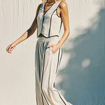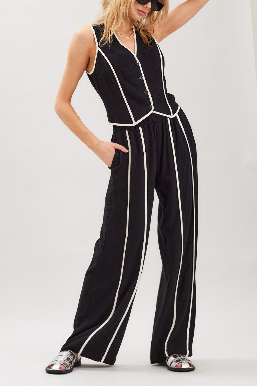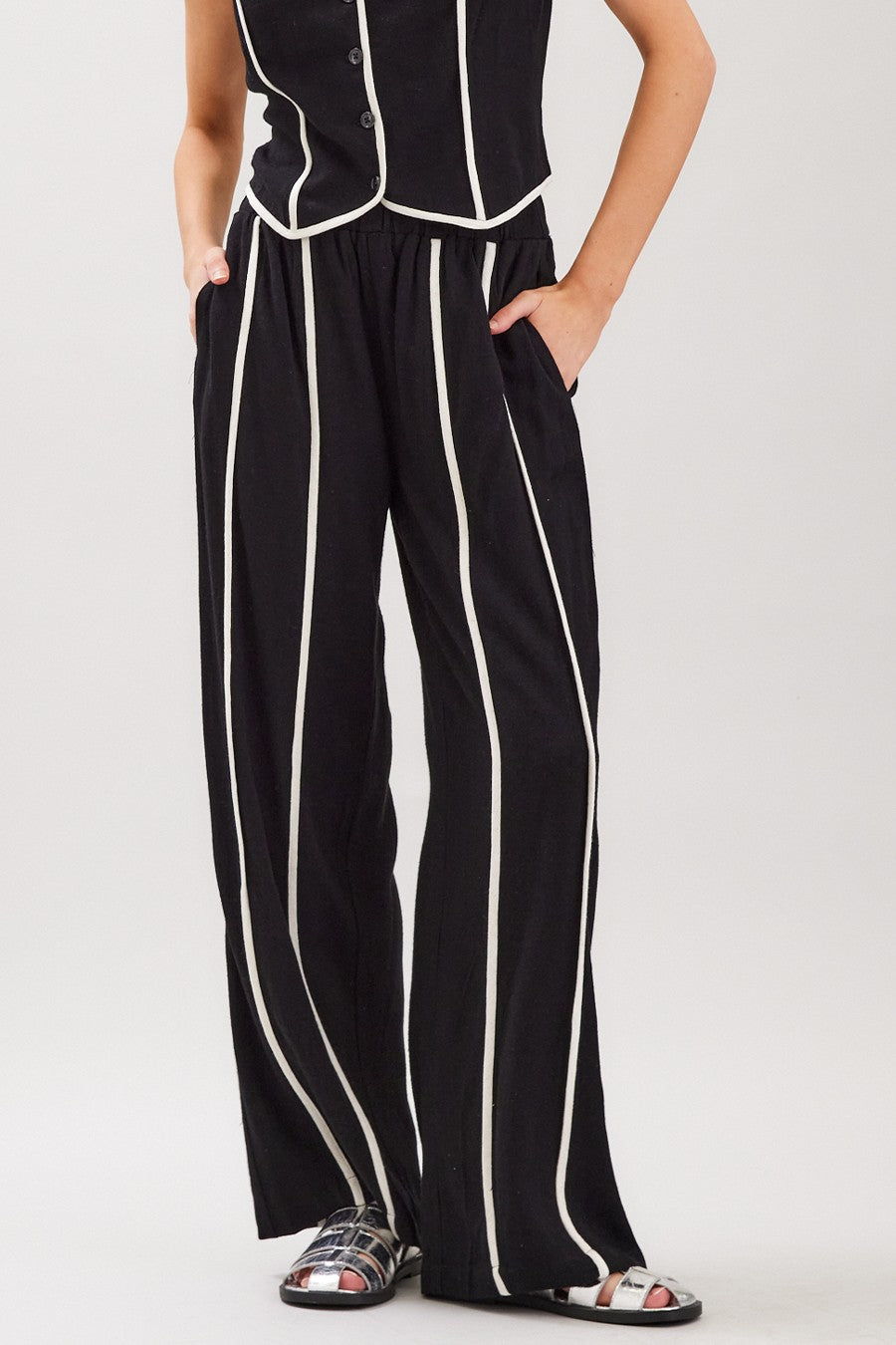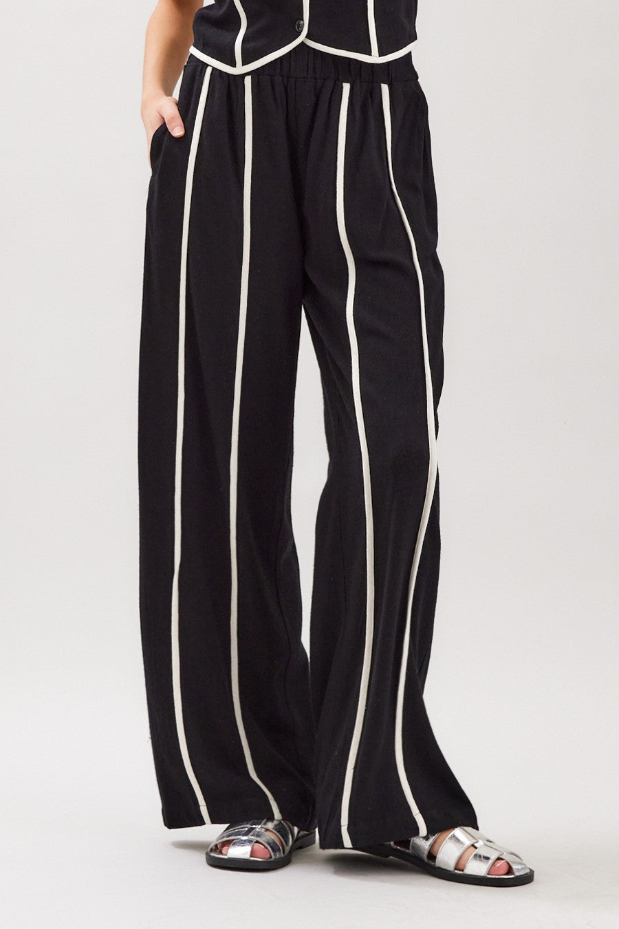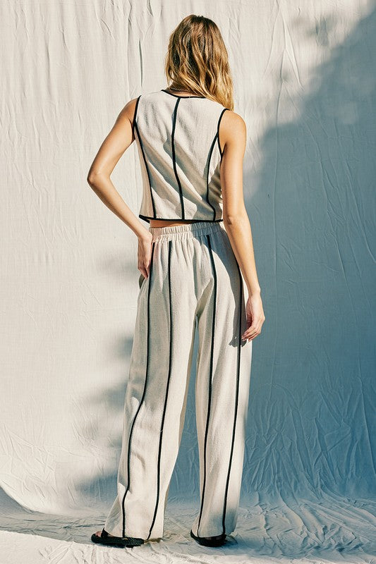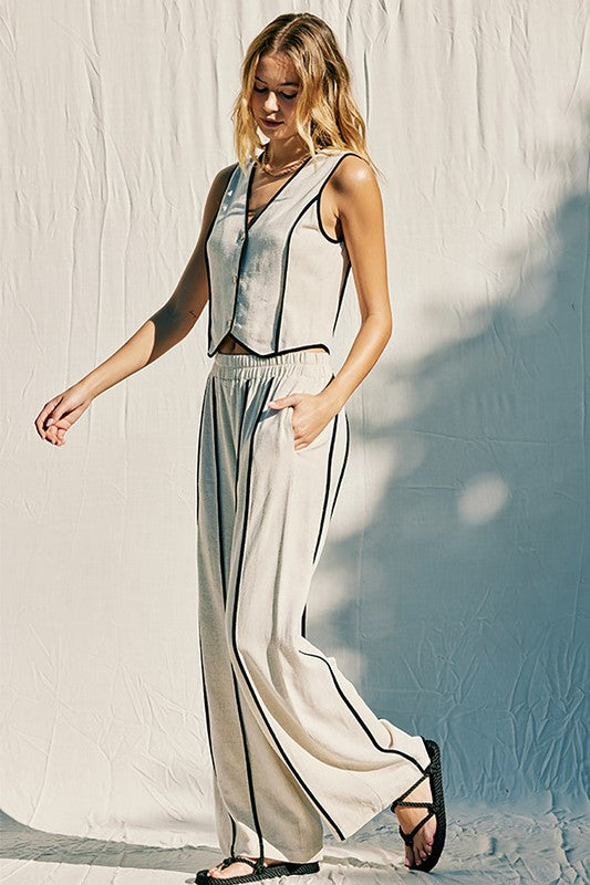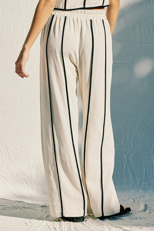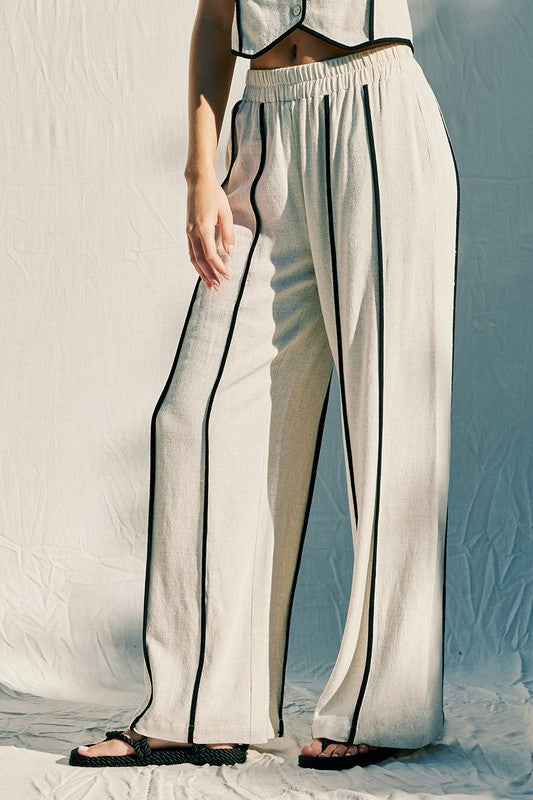 Immerse yourself in the cozy sophistication of our The Aquarium Pants. Made from premium linen fabric, these pants feature delicate binding details for a touch of refinement. The elastic waistband ensures a comfortable fit, while the side pockets add convenience. Indulge in relaxation with every step.
