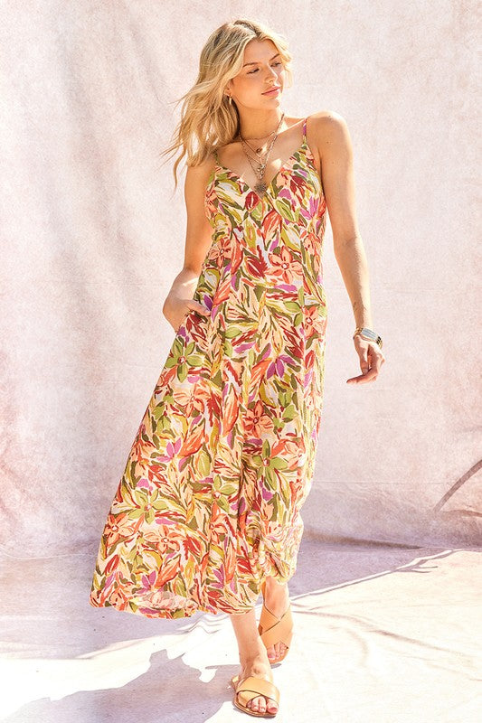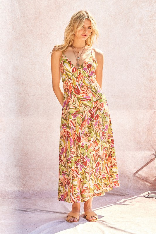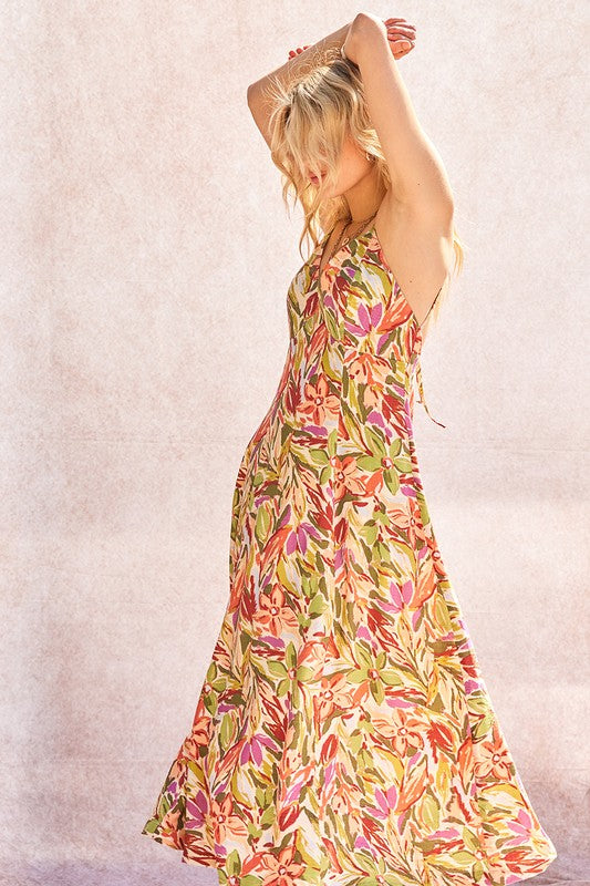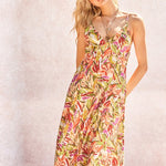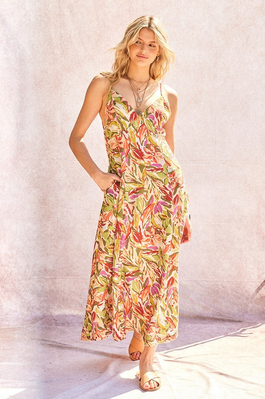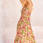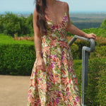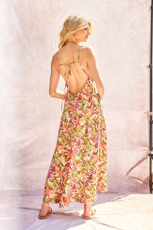Feel the freedom of spring in the Cockington Green Gardens Dress. The flowing silhouette, open back with tassel ties, and deep V-neckline create a look that’s both relaxed and captivating.