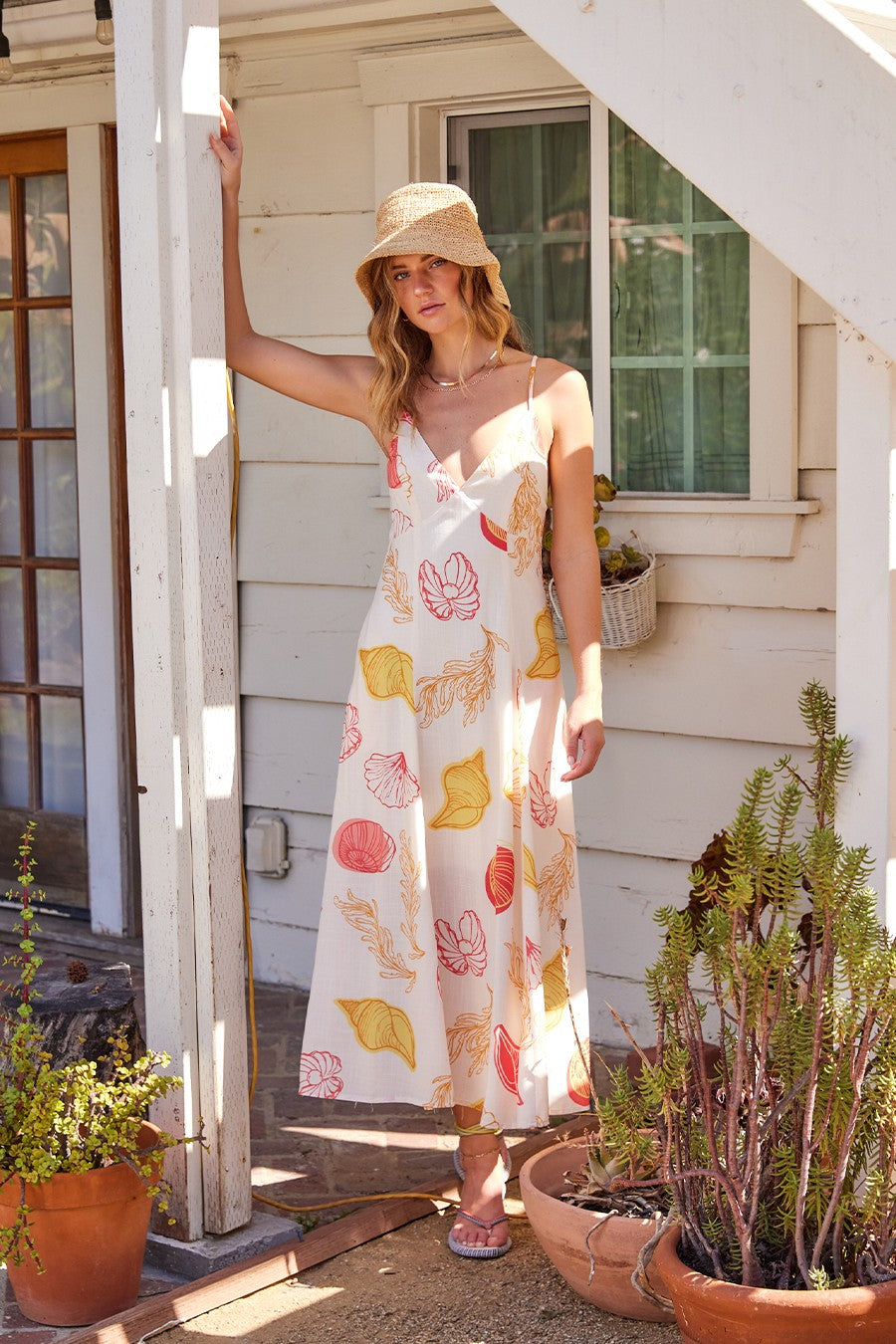 • Coconut back button closure for a touch of tropical charm