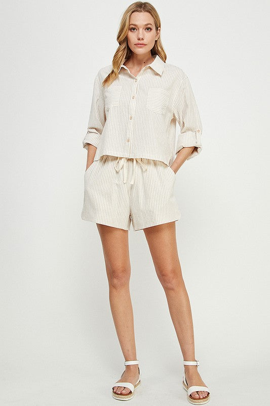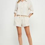 Unwind in the Blue Mountains Shorts—striped linen with a relaxed drawstring fit. Soft, breathable, and perfect for pairing with the matching Blue Mountains Shirt or Opera House Top. Your easy spring favorite!