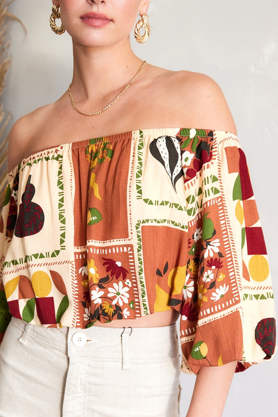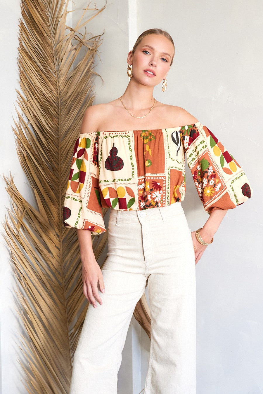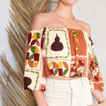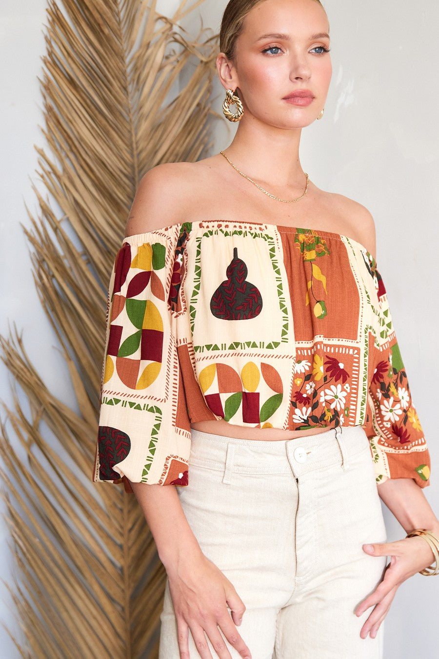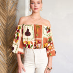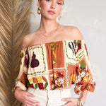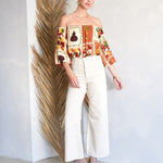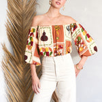 Feel light and carefree with the National Gallery Top. The off-shoulder neckline, 3/4 balloon sleeves, and cropped silhouette create the perfect mix of relaxed and stylish, ideal for warm days ahead.