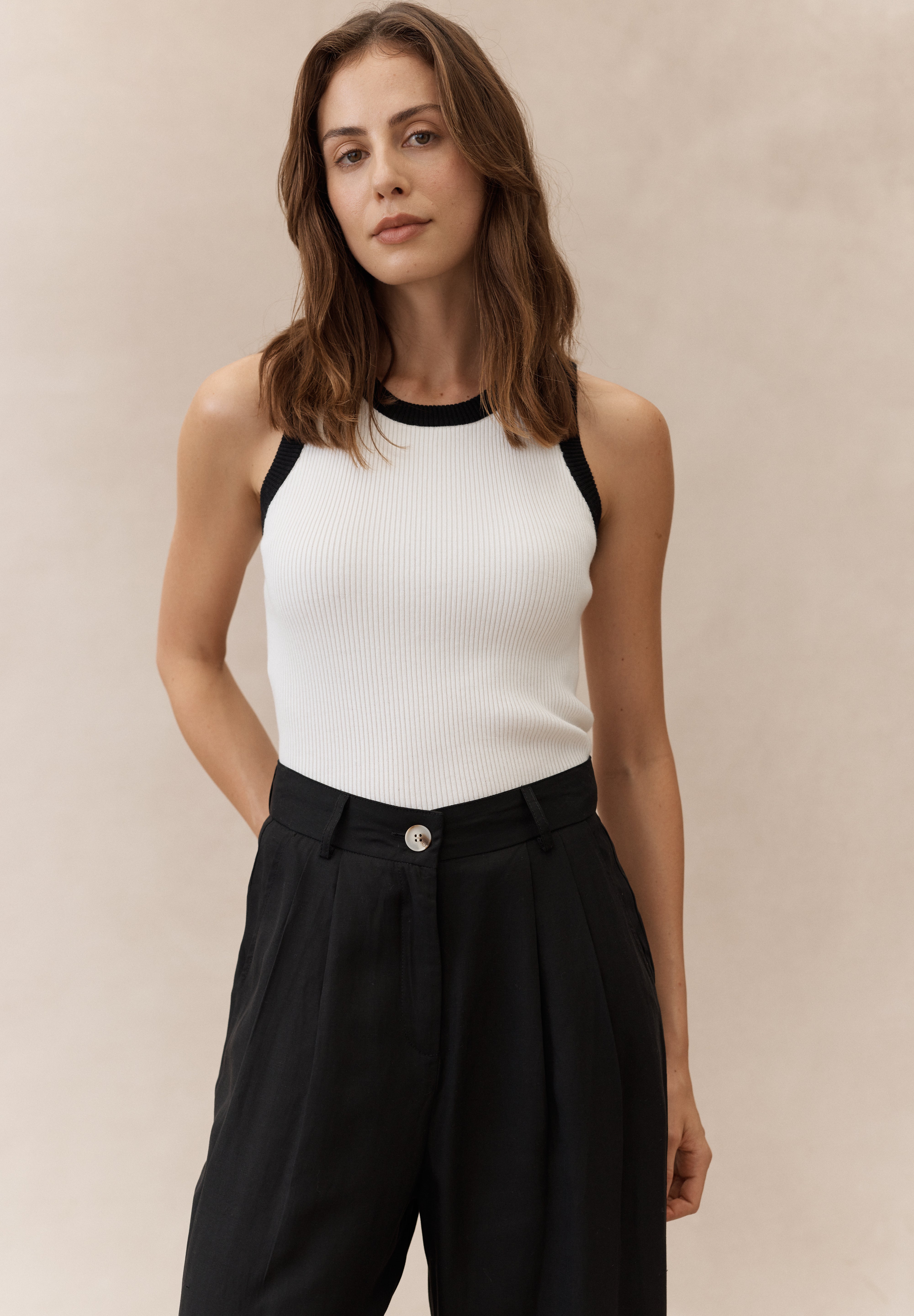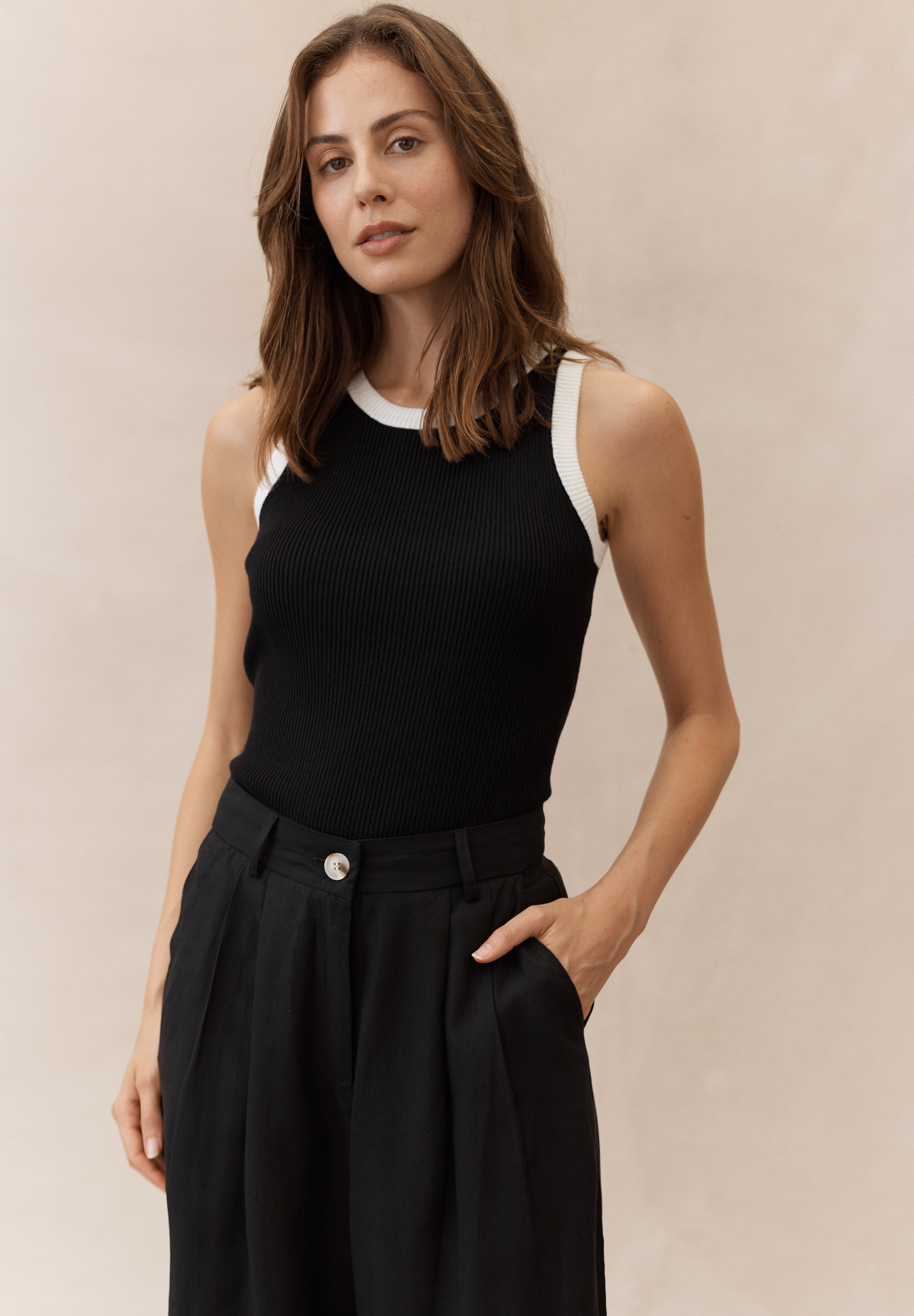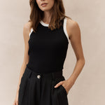 Fall in love with the soothing comfort of our Sugar Loaf Rock Tank Top. Delight in the gentle contrast color binding and monochrome palette. Crafted with super soft yarn and fine rib detail, it offers the perfect fit for ultimate relaxation. Keep it simple yet chic in this must-have piece from our new fall collection.