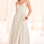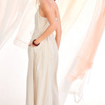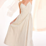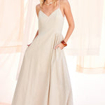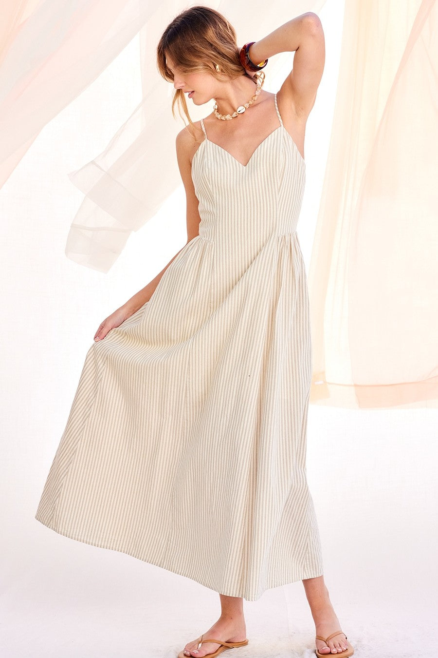 • Striped maxi dress in soft, neutral tones for a timeless look